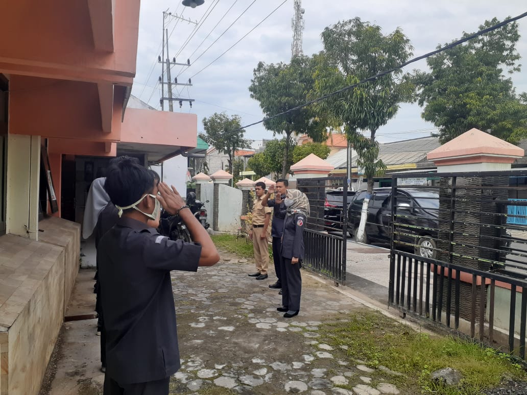 “mari kita awali kerja hari ini dengan semangat dan dan tetap jaga kerjasama dan meningkatkan kinerja sesuai dengan tupoksi masing-masing.” Tegasnya.