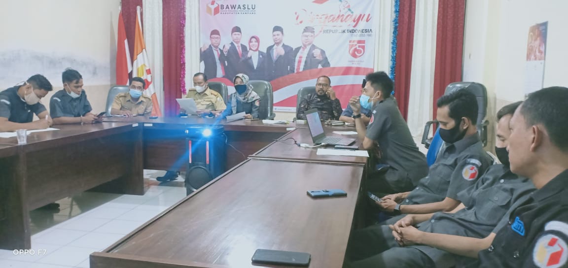 dipimpin Ketua Bawaslu Kabupaten Sampang Insiyatun.M.H, serta tiga Komisioner dan Koordinator Sekretariat Bawaslu Kabupaten Sampang. dimulai jam 09:00 sampai dengan jam 11:30 yang bertempatkan di Aula Kantor Bawaslu Kabupaten Sampang.