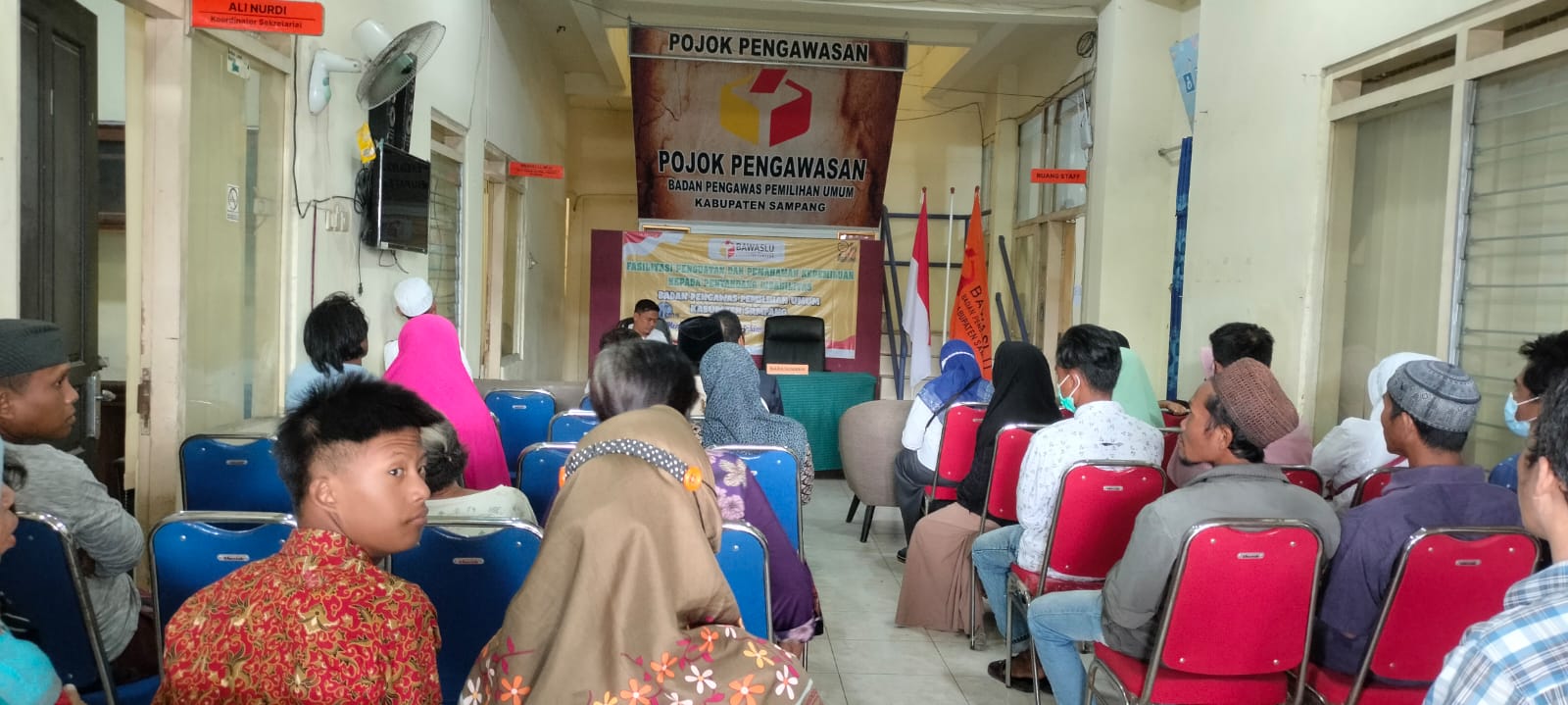 Sampang.Bawaslu Kabupaten Sampang gelar Sosialisasi Pengawasan Partisipatif yang bertempat di Aula Kantor Bawaslu Kabupaten Sampang . Kali ini mengangkat tema yang berbeda dari pengawasan partisipatif sebelumnya yaitu fokus pada kaum disabilitas. Acara dikemas dengan tema “Fasilitasi Penguatan dan Pemahaman Kepemiluan kepada Penyandang Disabilitas Perlindungan Hak Pilih Penyandang Disabilitas, untuk Menghadirkan Pemilu Yang Inklusif Untuk Semua” pada . Jumat (11/11/22). Hadir dalam sosialisasi ini berasal dari komunitas disabilitas yaitu Persatuan Penyandang Disabelitas Indonesia (PPDI) Kabupaten Sampang