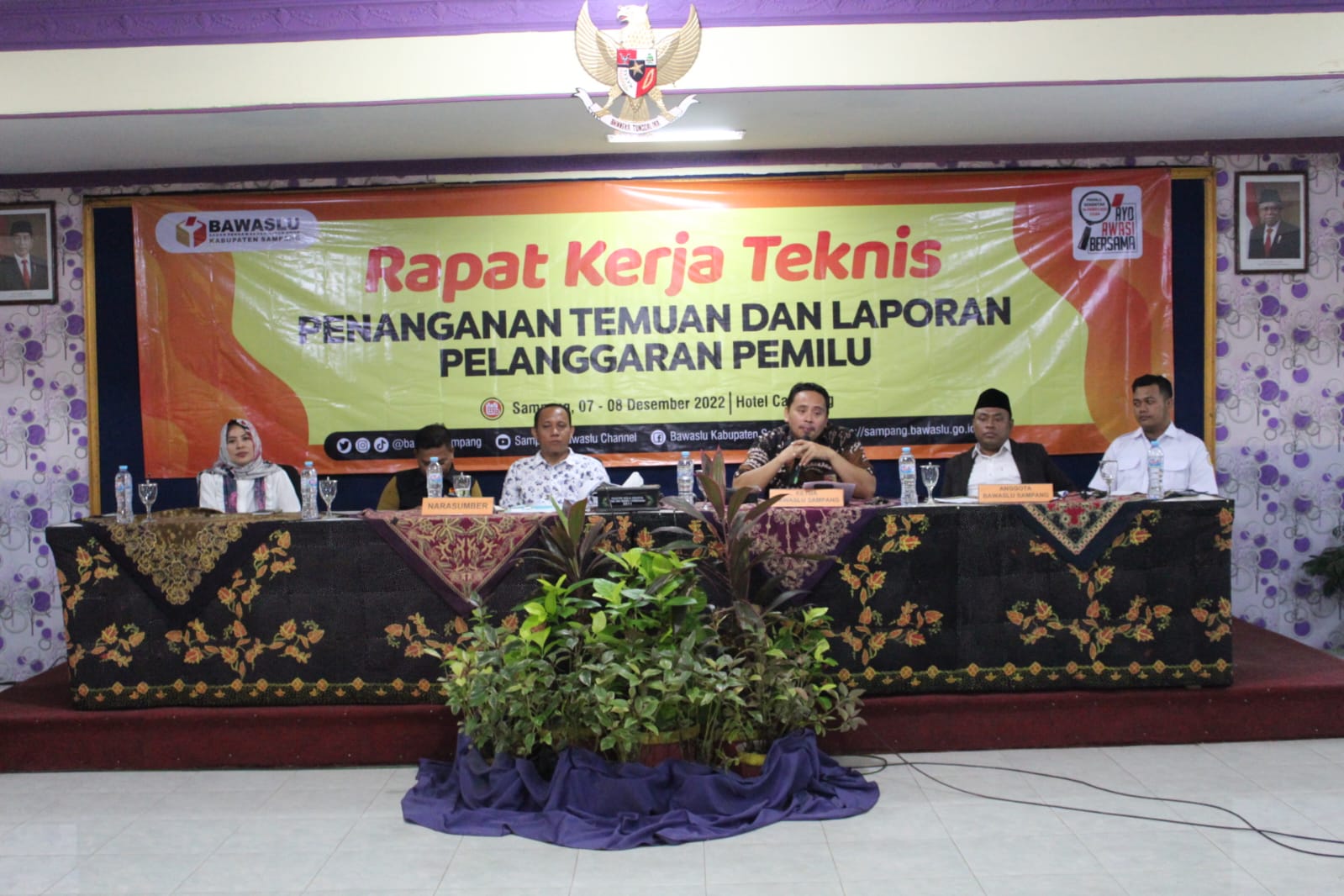 Sampang,Rapat Kerja Teknis (Rakernis) penanganan pelanggaran bagi seluruh Panwascam se-Kabupaten Sampang yang dilaksanakan di Hotel Wisata Camplong, yang dilaksanakan selama 2 (dua) hari (07-08/12/22).