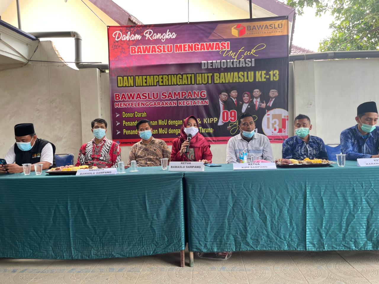 Dalam sambutannya Insiyatun, di HUT Bawaslu yang ke 13 menyampaikan merasa bangga menjadi sejarah dan bagian dari pengawas pemilu. dan yang terpenting adalah Bawaslu ada untuk mewujudkan demokrasi yang berkualitas bermartabat serta berintegritas. dalam hal ini bawaslu sampang mengadakan beberapa kegiatan yaitu donor darah dan penandatanganan MoU pengawasan partisipatif dengan Karang Taruna, KIPP dan Netfid Kabupaten Sampang.