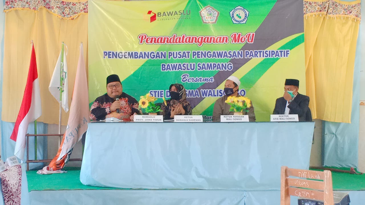 Sampang.03/03/2021.https://sampang.bawaslu.go.id/.Bawaslu Kabupaten Sampang terus kembangkan sayap pengawas partisipatif melalui kerja sama (MoU) dengan Perguruan Tinggi STEI Wali Songo dan SMK Wali Songo . Mou ini ditandatangani oleh Ketua Bawaslu Kabupaten Sampang Insiyatun.M.H, Rektor STEI Wali Songo dan Kepala sekolah SMA Wali Songo, dalam pertemuan ini dihadiri oleh Ketua Bawaslu Provinsi Jawa Timur Moh.Amin.,MPd, serta Kordiv Hukum Humas Dan Data Informasi Suhariyanto.S.Sos, Kordiv Penanganan Pelanggaran Yunus Ali Ghafi.S.Sos. dan Kordiv Sumber Daya Manusia Dan Organisasi Luddin.,SPd.I .