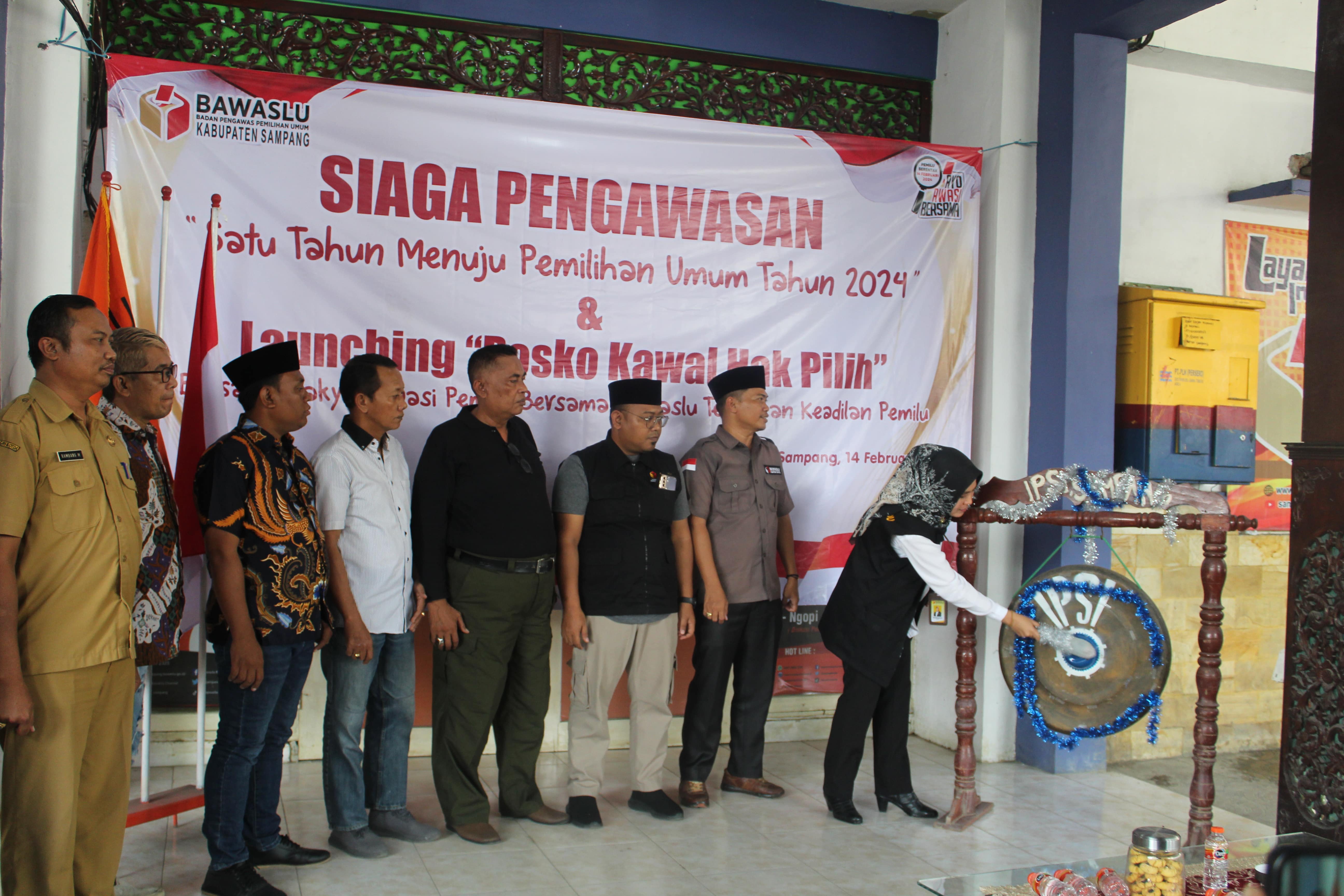 Sampang. Menjelang penyelenggaraan Pemilu 2024, yang tinggal satu tahun lagi, dan dalam rangka memaksimalkan pengawasan Pemilu. Bawaslu Kabupaten Sampang menggelar Siaga Pengawasan dan Launcing Posko Kawal Hak Pilih dengan Demokrasi Damai Dan Berintegritas yang dilaksanakan di Halaman Kantor Bawaslu Kabupaten Sampang. Selasa 14/02/2023.