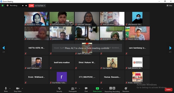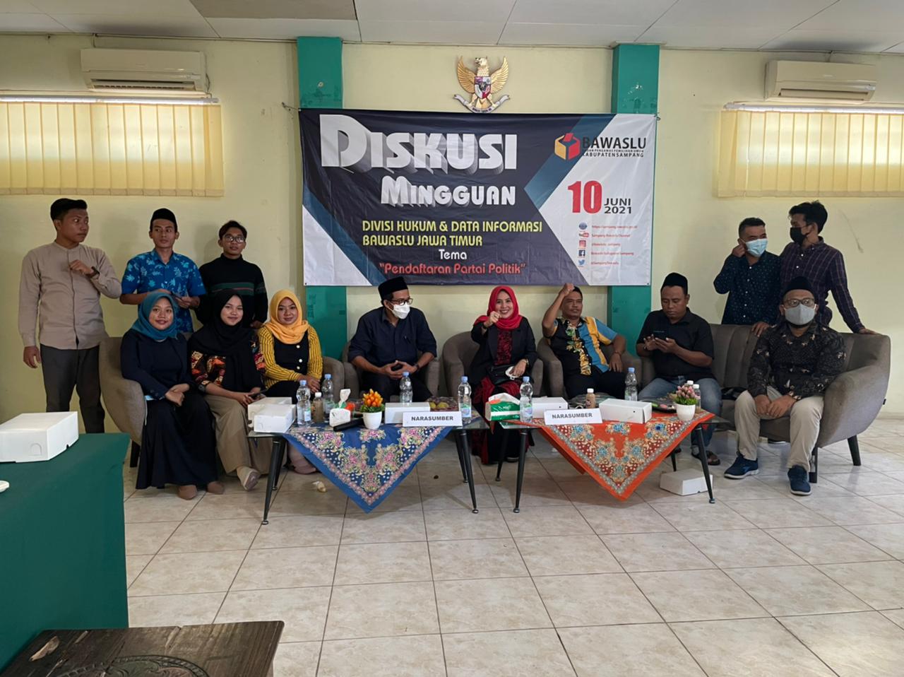 Sampang, 10 /06/2021.Bawaslu Sampang bersama Bawaslu Kota Bawaslu Kota Surabaya menyelenggrakan kegiatan Diskusi Mingguan Divisi ukum dan Data Informasi Bawaslu Jatim sesi 2 dengan tema” Pendaftaran Parpol”