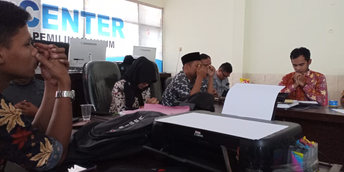 Bawaslu Sampang menggelar doa bersama saat sidang di Mahkamah Konstitusi (MK) guna mendukung kelancarannya. Doa bersama digelar di ruang rapat/aula Bawaslu Sampang yang di pimpin oleh Anggota Bawaslu Luddin. 15/07/2019