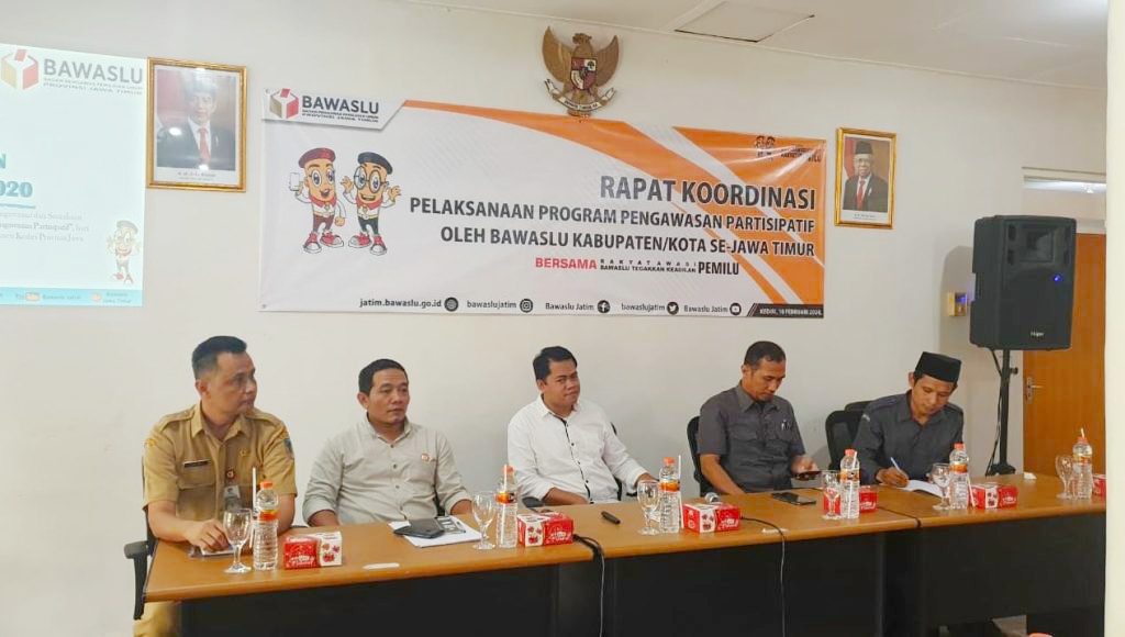 Dihadiri oleh ketua Bawaslu Provinsi Jawa Timur Moh. Amien dan Aang Kunaifi selaku Koordinator Divisi Pengawasan dan Kordiv Pengawasan Bawaslu Kabupaten / Kota terundang. Kegiatan ini bertujuan untuk mengharmonisasi berbagai kegiatan yang akan dilaksanakan Tahun 2020 terkait pengawasan partisipatif, komposisi anggaran untuk pengawasan partisipatif baik pilkada maupun non-pilkada, dan bentuk-bentuk kegiatan yang akan dilaksanakan di kabupaten/kota pada 2020 yang pilkada dan yang non-pilkada.