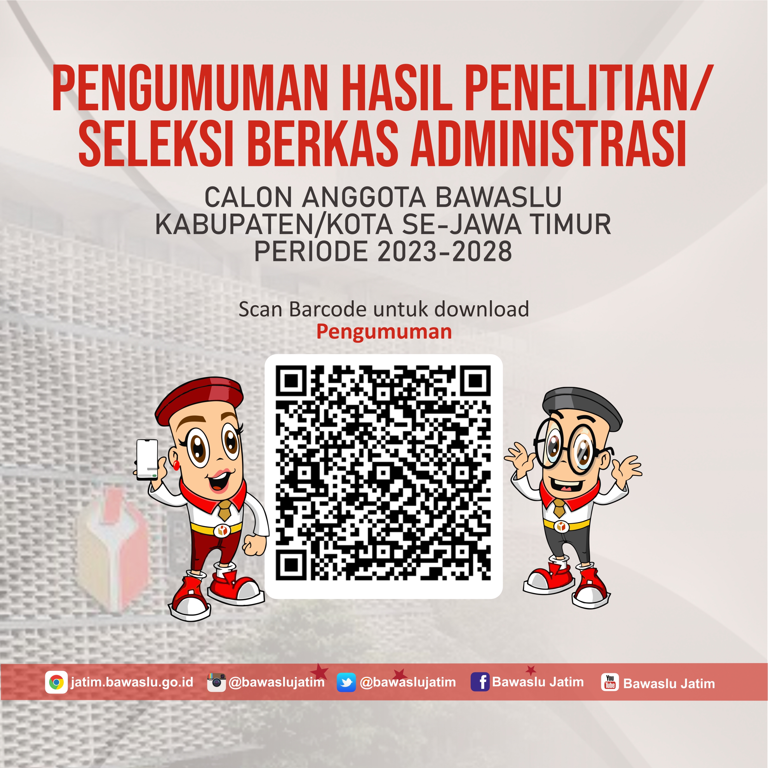 PENGUMUMAN HASIL PENELITIAN BERKAS ADMINISTRASI CALON ANGGOTA BAWASLU KABUPATEN/KOTA PROVINSI JAWA TIMUR ZONA 1