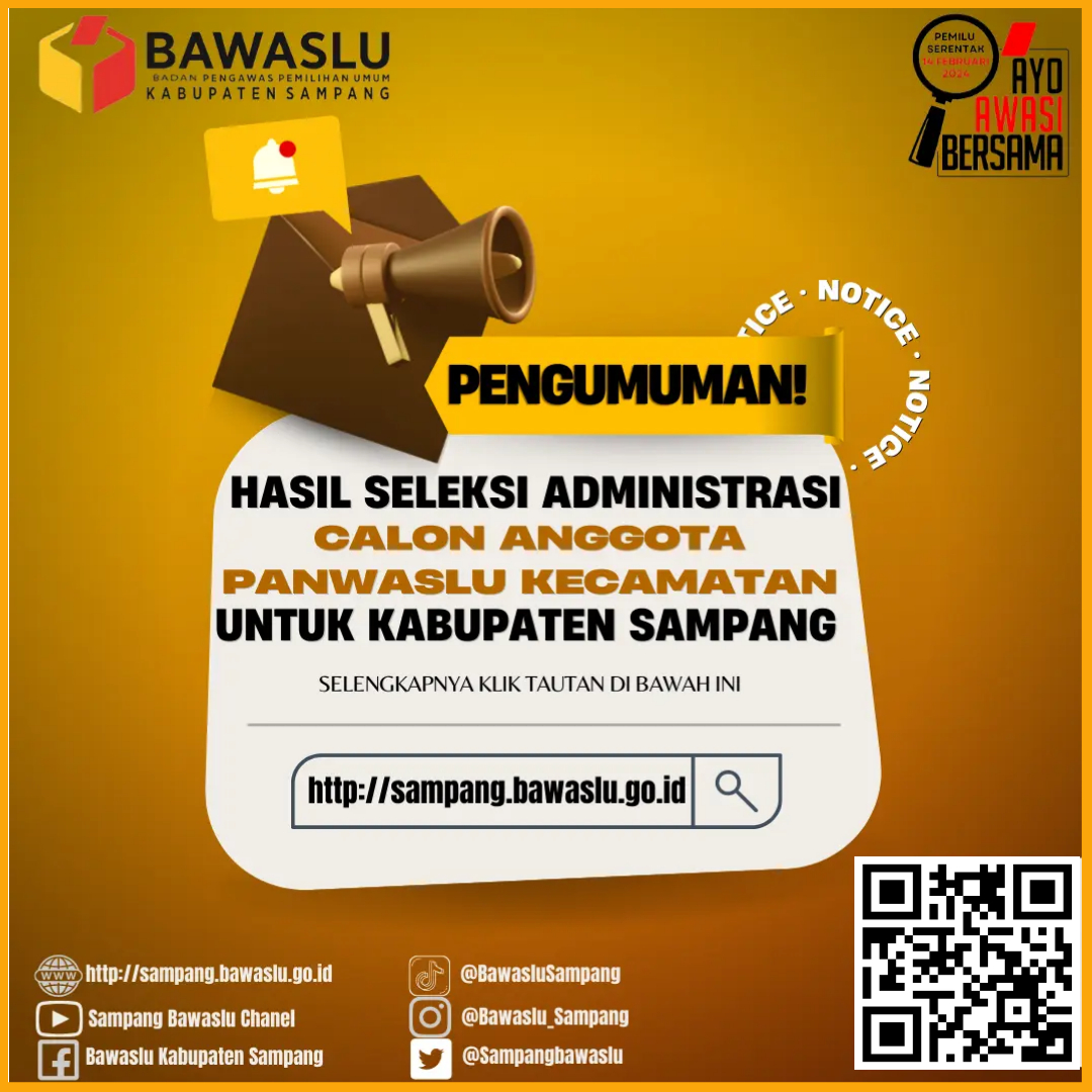 Pengumuman Hasil Seleksi Administrasi Calon Anggota Panwaslu Kecamatan Se-Kabupaten Sampang Dalam Pemilu Tahun 2024