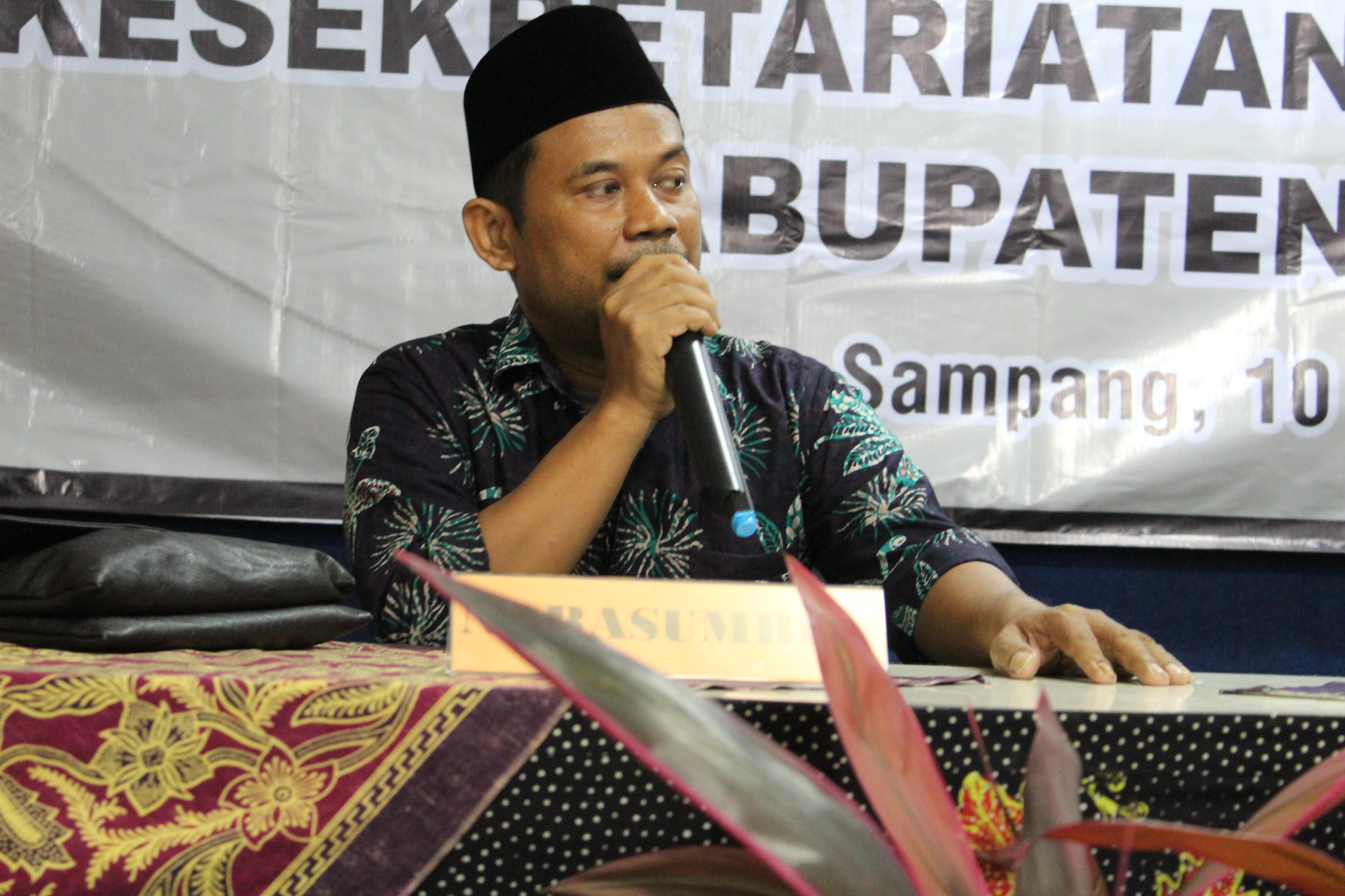 Keterangan Foto: Luddin Kordiv SDM-O dan Diklat Saat Memberikan Arahan Pada Kegiatan Penguatan Kelembaan dan SDM Serta Kesekretariatan Bawaslu Kabupaten Sampang[/caption]