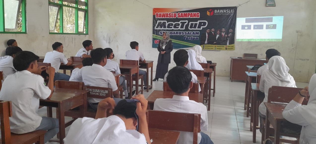 Lebih jauh Insiyatun menjelaskan maksud dan tujuan lainnya dari giat tersebut adalah sebagai bentuk dalam memberikan Pendidikan politik dan Demokrasi dasar kepada para siswa-siswi SMK Darussalam, juga untuk memperluas jaringan pengawas partisipatif.
