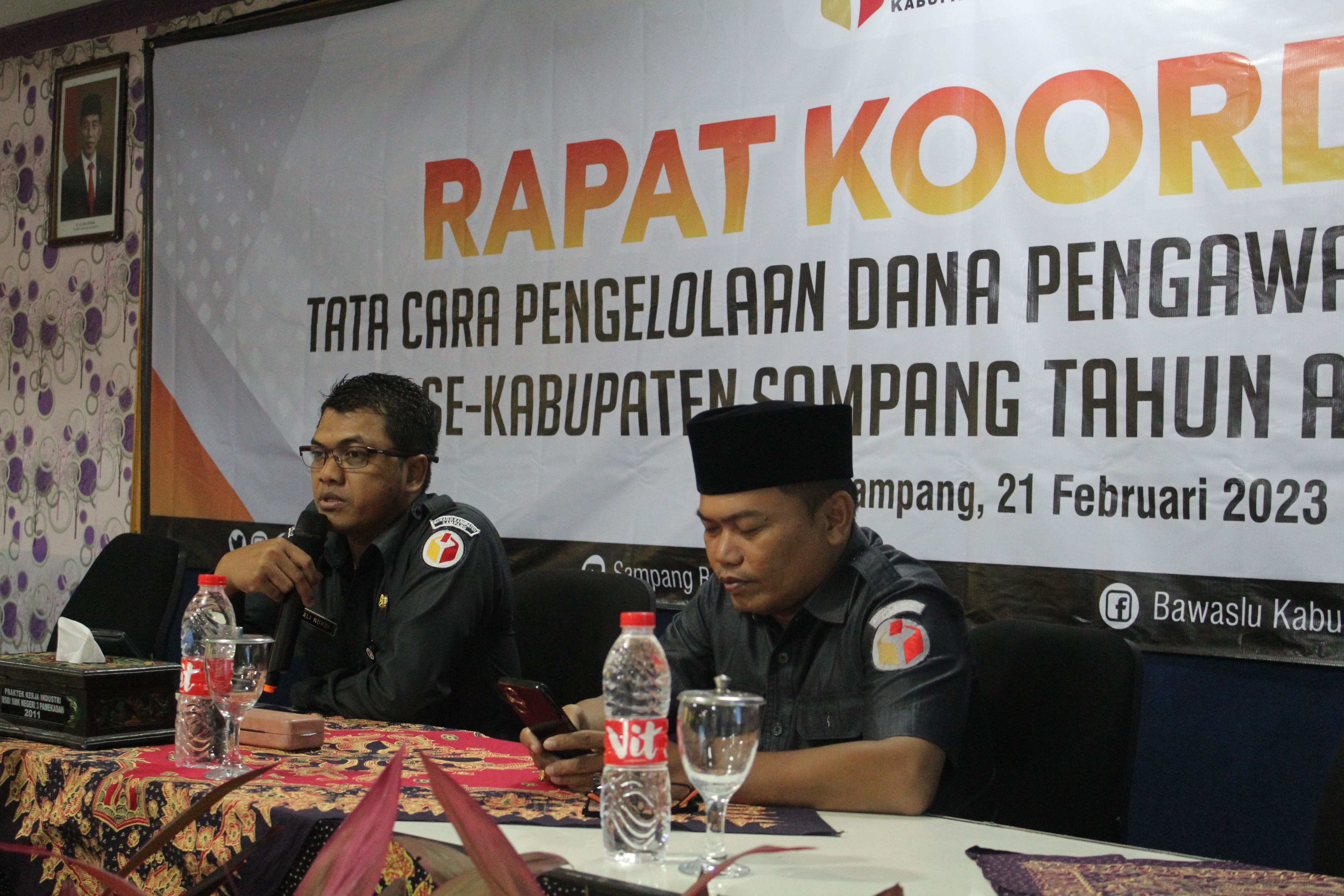 Koordinator Sekretariat Bawaslu Kabupaten Sampang Ali Nurdi.S.T menyampaiakan beberapa poin penting dalam pengelolaan dana pengawas pemilu Kecamatan yang pertaman adalah pengelolaan dana itu harus hati hati dan harus bisa dipertanggung jawabkan serta harus tertib administrasi.