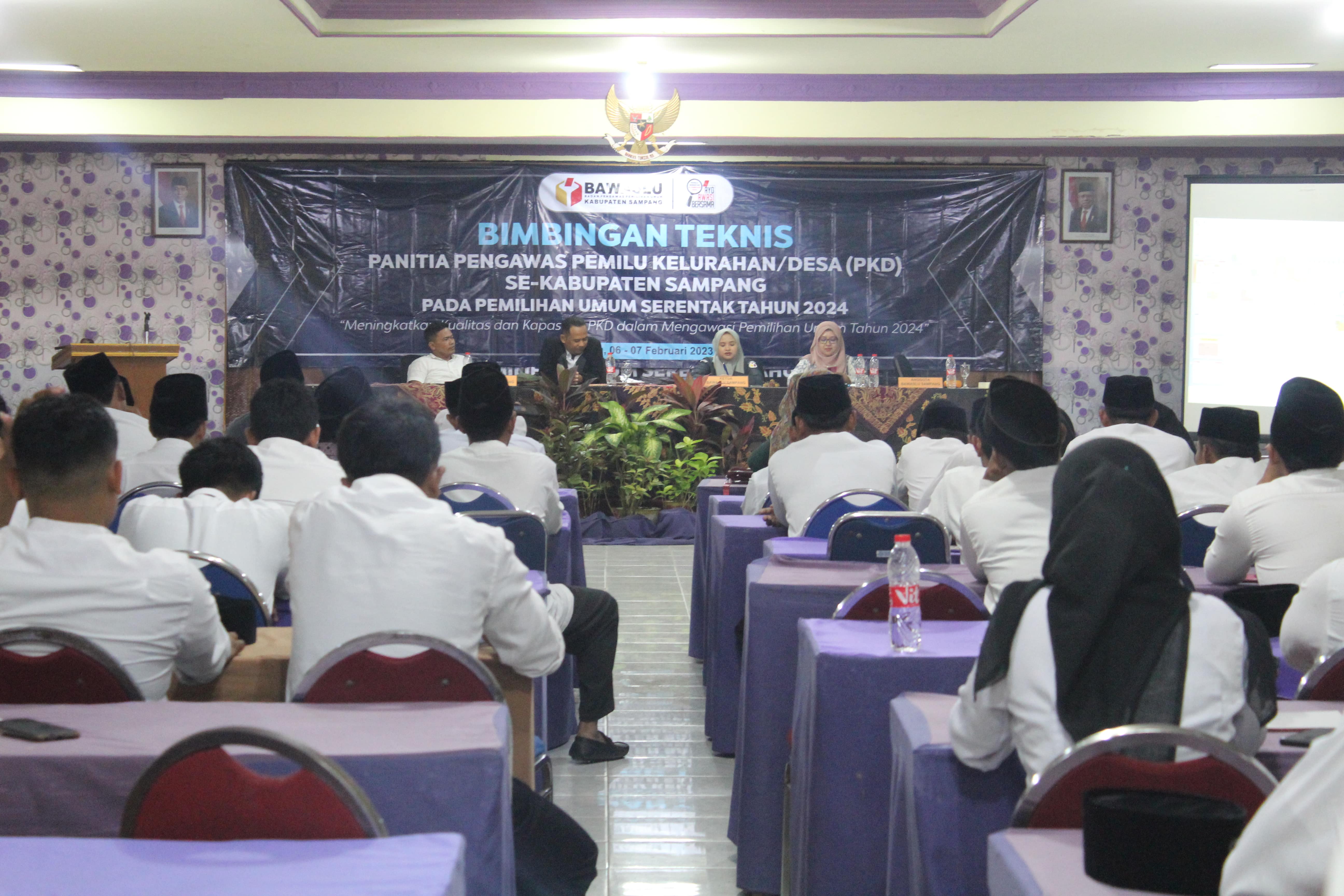 Sampang. Badan Pengawas Pemilihan Umum (Bawaslu) Kabupaten Sampang lakukan Bimtek penigkatan kapasitas Pengawas Pemilihan Umum Kelurahan dan Desa (PKD) Se-Sampang, Senin (07/02/2023).